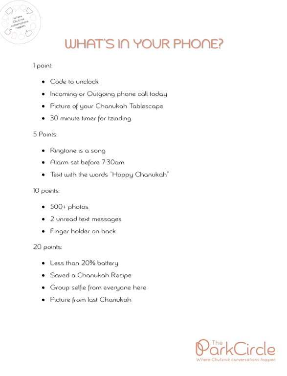 How to Play: Each person presents their item and explains why they are obsessed with it (a hand cream they can't live without, the perfect kitchen gadget, a candle that actually smells good). Everyone takes a turn spinning a dreidel. For every gimmel, that person immediately gets to choose one item. Continue spinning through the group until everyone has chosen their three favorite items.