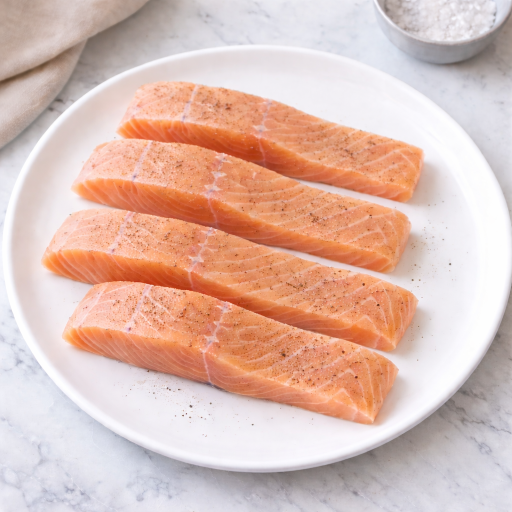 1. Remove the salmon from the fridge 20 minutes before cooking. Pat the skin dry and season with salt and pepper.